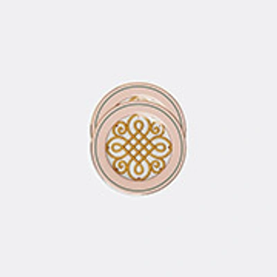 Designed by La DoubleJ, this set of two porcelain dessert plates features the Milan-based brand's 'Cortile Pink' motif — one of a series of prints inspired by the company's hometown, and here presented in pink and yellow tones. Dishwasher safe and featuring a hand painted 18 carat gold trim, this colorful duo can be paired with other plates from the series for a maximalist explosion of pattern and pigment on the table.