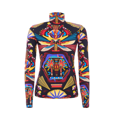 La DoubleJ Shirts & Tops gend Turtleneck Nephthys Navy. A soft and stretchy turtleneck with a whole bunch of possibilities. Our slightly stretchy, Italian-made skinny jersey has a silky second-skin feel that hugs the body just right. Perfect for layering underneath our sleeveless dresses or for tucking into a pair of jeans, though naturally we love it best with the matching printed leggings for the most high-vibing look in your yoga class.