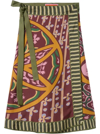 dark purple wrap design all-over graphic print A-line straight hem