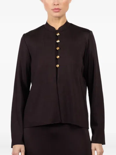 LA GALPA Mandarin-collar Crystal-button Top In Brown