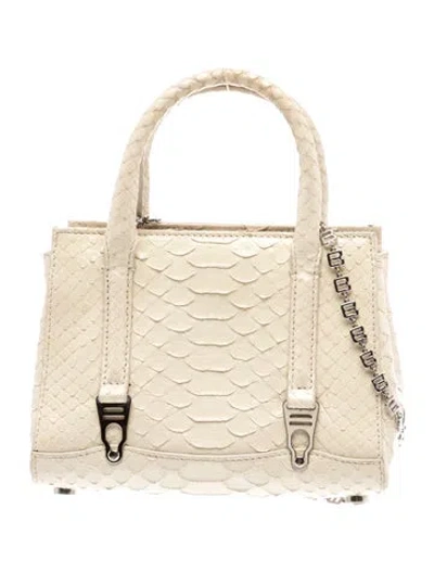 La Perla Top Handle Bag Gold Python Silver-Tone Hardware Satin Lining Zip Closure at Top Protective Feet at Base Unfortunately, due to restrictions, this item may not be eligible for shipping in all areas. | La Perla Python Top Handle Bag in Gold