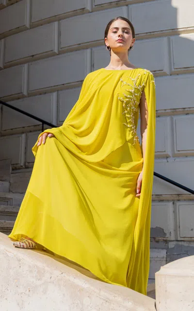 La Plain Mossglow Embellished Chiffon Caftan - Moda Operandi