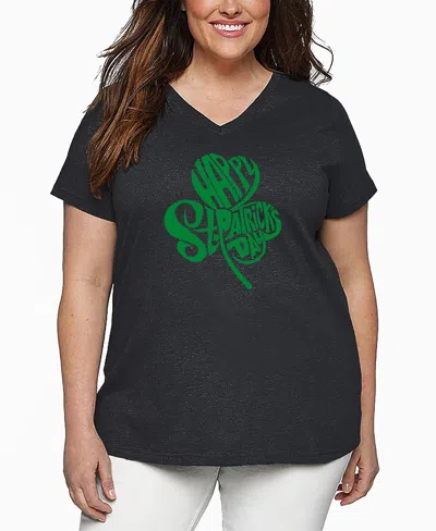 LA POP ART Plus Size St. Patrick's Day Shamrock Word Art V-neck T-shirt In Gray