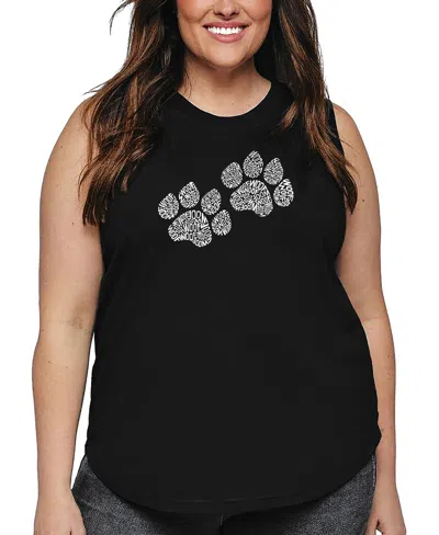 LA POP ART Plus Size Woof Paw Prints Word Art Tank Top In Black