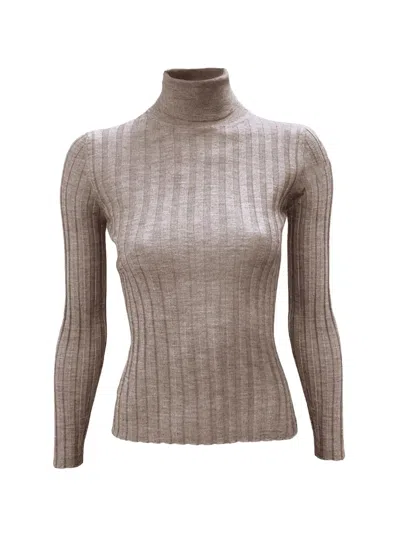 beige ribbed knit turtleneck long sleeves
