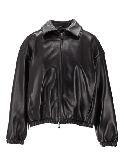 black nappa leather zip fastening collar elasticated hem and cuffs
