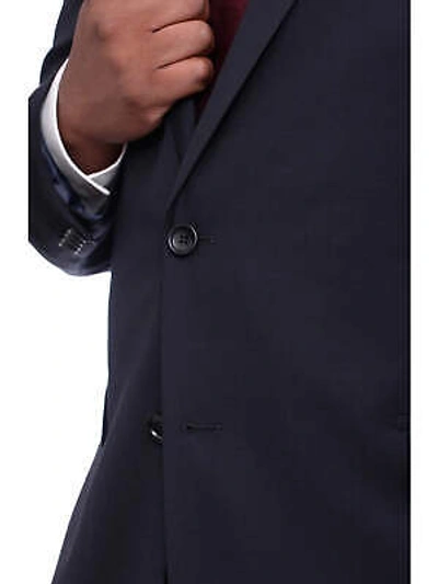 Pre-owned Men's Classic Fit Solid Navy Two Button 100% Wool Suit In Blue