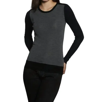 The ultimate go-to sweater, expertly crafted to provide the perfect combination of warmth and style. Its classic design and soft fabric make it a must-have addition to your wardrobe.Fine gauge rib pullover in super fine merino wool, features contrast sleeves and blocked back panel. 100% Extrafine Merino Wool. Hand Wash or Dry Clean.