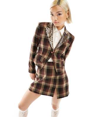 X Dyspnea Checked Leopard Trim Fitted Jacket In Brown - Part Of A Set