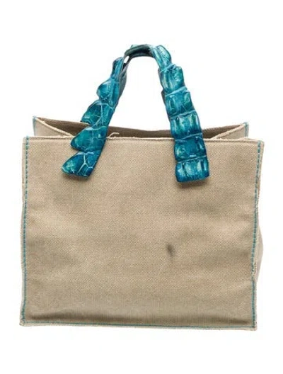 Laboratorio Capri Top Handle Bag Neutrals & Red Canvas Gold-Tone Hardware Canvas Lining Open Top | Laboratorio Capri Canvas Top Handle Bag in Neutrals/Red