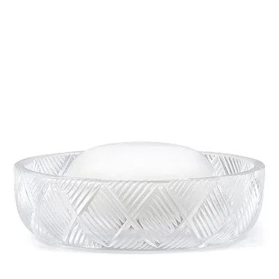 Designed by Roger Thomas, this sparkling crystal soap dish is cut by hand in a classic basketweave pattern. Produced in mouth-blown crystal, this piece requires artistry at the cutting wheel and meticulous finishing.