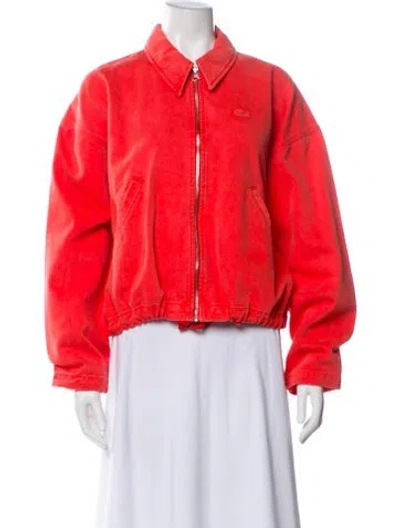 Lacoste Jacket Orange Embroidered Accent & Pointed Collar Slit Pockets & Zip Closure Fit: Jackets by Lacoste typically fit true to size. | Lacoste Jacket in Orange, Women's M