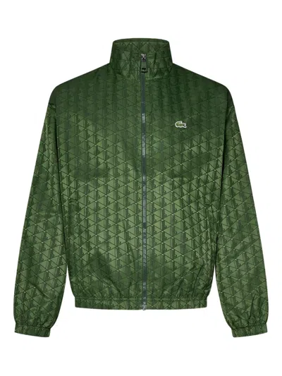 LACOSTE Monogram Pattern Zip-up Track Jacket In Green