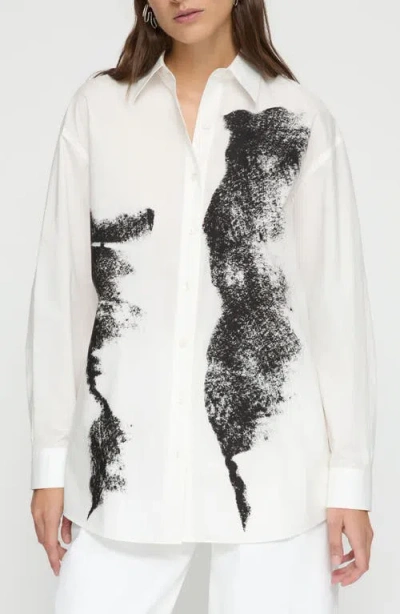 Oversized Abstract-print Boyfriend Shirt In White Multi