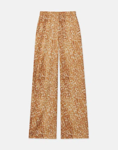 Petite Floating Leaves Print Textured Silk Satin Riverside Pant In Multi