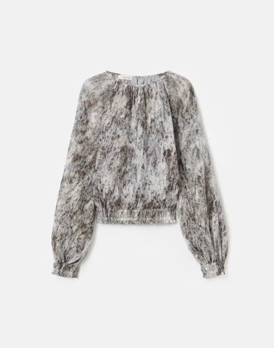 LAFAYETTE 148 Speckled Glaze Print Georgette Gathered Blouse In Pearl Multi In Gray