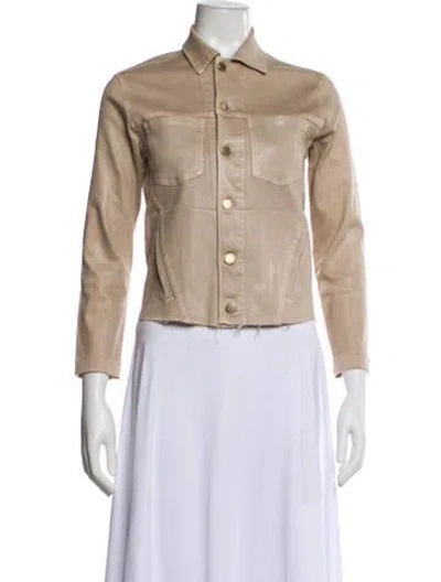 L'Agence Biker Jacket Neutrals Raw-Edge Trim & Pointed Collar Button Closure Fit: Jackets by L'Agence typically fit true to size. | L'Agence Biker Jacket in Neutrals, Women's XS