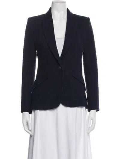 L'Agence Blazer Blue Raw-Edge Trim & Pointed Collar Flap Pockets & Button Closure Fit: Jackets by L'Agence typically fit true to size. | L'Agence Blazer in Blue, Women's US 0 | XS