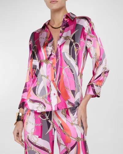Dani Belt Swirl Printed Silk Blouse In Pink Mlt Buckle Swirl