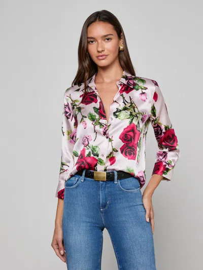 collection: all clothing, collection: blouses and denim, collection: blouses and tops, collection: new arrivals, collection: new arrivals - rtw, collection: print edition, collection: prints and denim, color family: multi, color family: pink, handle:dani-three-quarter-sleeve-blouse-black, material: silk, model: Anna, plp tag: l'agence exclusive, plp tag: new arrival, season: 2512, sleeve: 3/4 sleeve, WINTER 3