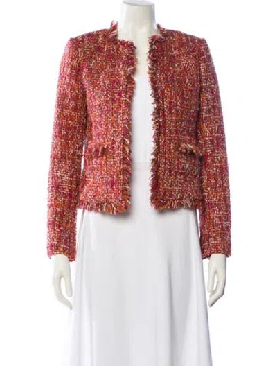 L'Agence Evening Jacket Tweed Pattern Fringe & Glitter Accents Collarless Front Pocket & Open Front Fit: Jackets by L'Agence typically fit true to size. | L'Agence Tweed Pattern Evening Jacket, Women's US 0 | XS