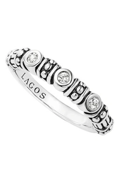 LAGOS Sterling Silver Three Diamond Stacking Ring
