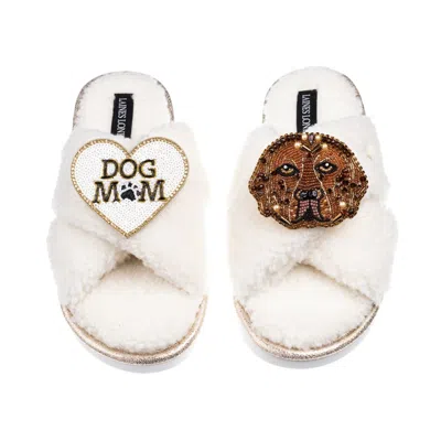 LAINES LONDON Women's Neutrals / White Laines Neutral Boucle Slippers With Rocco The Labrador & Dog Mum/mom Brooch