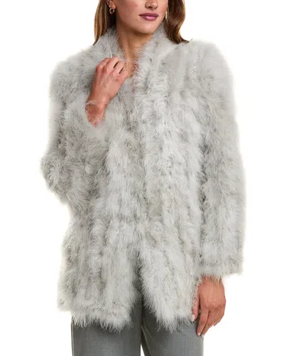 Elevate your outerwear collection with the LAMARQUE Feather Jacket. This stunning jacket is crafted with 100% Turkey Feathers in a light grey color, adding a touch of luxury to your wardrobe. Featuring front slip pockets and a slip-on styling, this jacket is both stylish and functional. The lining is made of 100% polyester for added comfort. Perfect for any occasion, this jacket is approximately 27 inches from shoulder to hem and is sure to become a staple in your closet. Dry clean only. Imported. Model is 5'9.5 and is wearing a size small. Measurements may vary slightly by size.