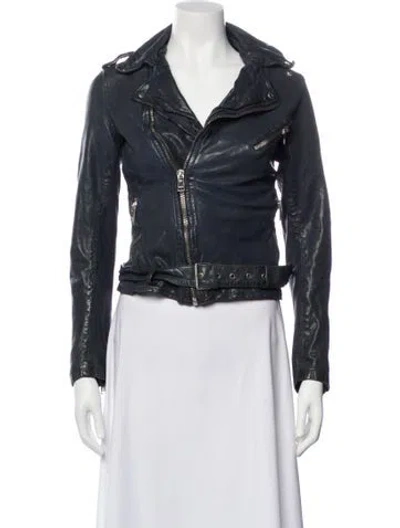 Pre-owned Leather Biker Jacket In Blue