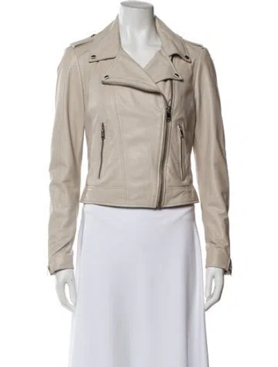 Pre-owned Leather Biker Jacket In Neutral