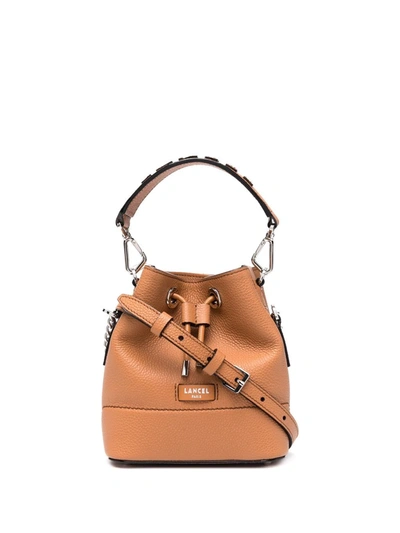 Bron calf leather drawstring leather bag from LANCEL featuring drawstring fastening, adjustable shoulder strap, single flat top handle and silver-tone logo lettering.