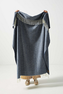 LANDS DOWNUNDER Solid Herringbone Throw Blanket In Blue