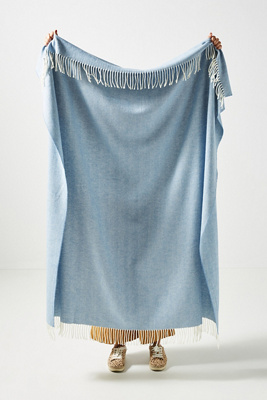 LANDS DOWNUNDER Solid Herringbone Throw Blanket In Blue