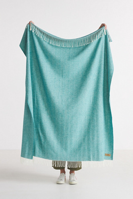 LANDS DOWNUNDER Solid Herringbone Throw Blanket In Blue