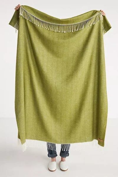 LANDS DOWNUNDER Solid Herringbone Throw Blanket In Green