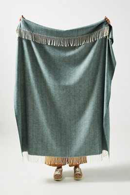 LANDS DOWNUNDER Solid Herringbone Throw Blanket In Green