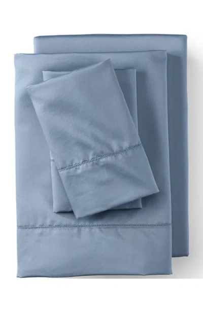 LANDS' END 700 Thread Count Luxe Sateen Egyptian Cotton No Iron Bed Sheet Set In Blue Pewter