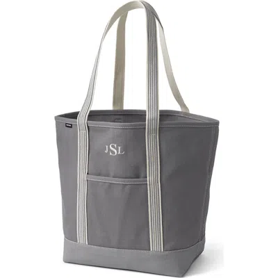 LANDS' END Open Top Long Handle Canvas Tote Bag In Silver Graphite