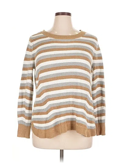 Lane Bryant Pullover Sweater, Size: 14. Item Details: Tan, Stripes Pattern, Scoop Neck, Long Sleeve, Women's Tops, Cotton/Acrylic