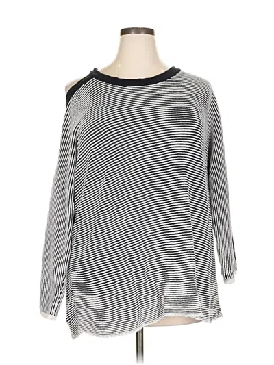 Lane Bryant Pullover Sweater, Size: 26. Item Details: Gray, Stripes Pattern, Cold Shoulder Neckline, Long Sleeve, Cut Outs, Women's Tops, Cotton/Acrylic
