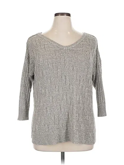 Lane Bryant Pullover Sweater, Size: 14. Item Details: Gray, Chevron/Herringbone Pattern, Scoop Neck, 3/4 Sleeve, Women's Tops, Acrylic/Polyester/Metal