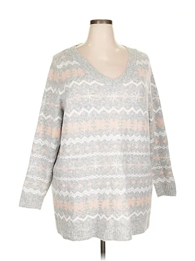 Lane Bryant Pullover Sweater, Size: 22. Item Details: Gray, Chevron/Herringbone Pattern, V Neck, 3/4 Sleeve, Women's Tops, Acrylic/Nylon/Wool