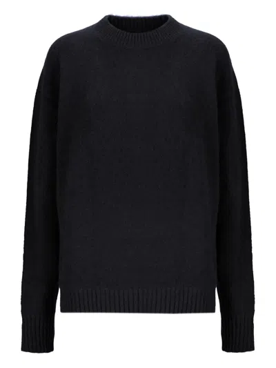 black ribbed hem and cuffs long sleeves crew neck cashmere-silk blend