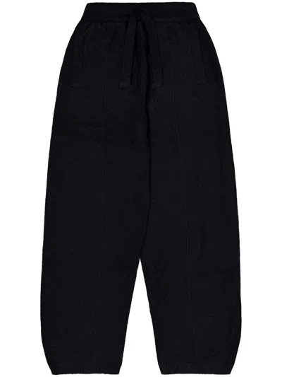 black cashmere-silk blend elasticated waistband drawstring fastening waist ribbed cuffs