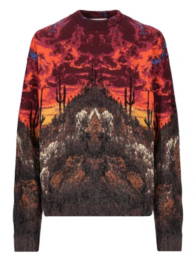 LANEUS Patterned-jacquard Sweater In Red