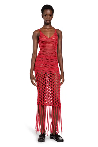redcotton nylon crochet knitv-necksleevelessopen back fringed hem