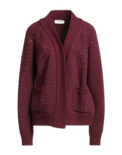 LANEUS Woman Cardigan Plum Size 4 Wool, Polyamide In Burgundy