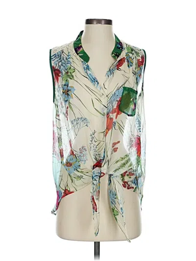 Language Sleeveless Blouse, Size: X-Small. Item Details: Ivory, Floral Pattern, Plunge Neckline, Women's Tops