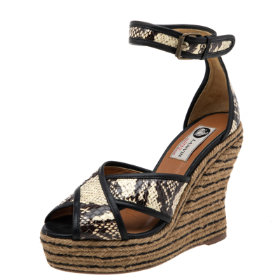 Pre-owned Beige/brown Python Embossed Leather Platform Wedge Sandals Size 37