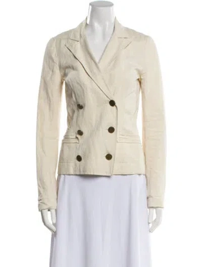 Lanvin Blazer Neutrals Raw-Edge Trim & Pointed Collar Slit Pockets & Button Closure Designer Fit: Jackets by Lanvin typically fit true to size. | Lanvin Blazer in Neutrals, Women's US2, FR34 | XS